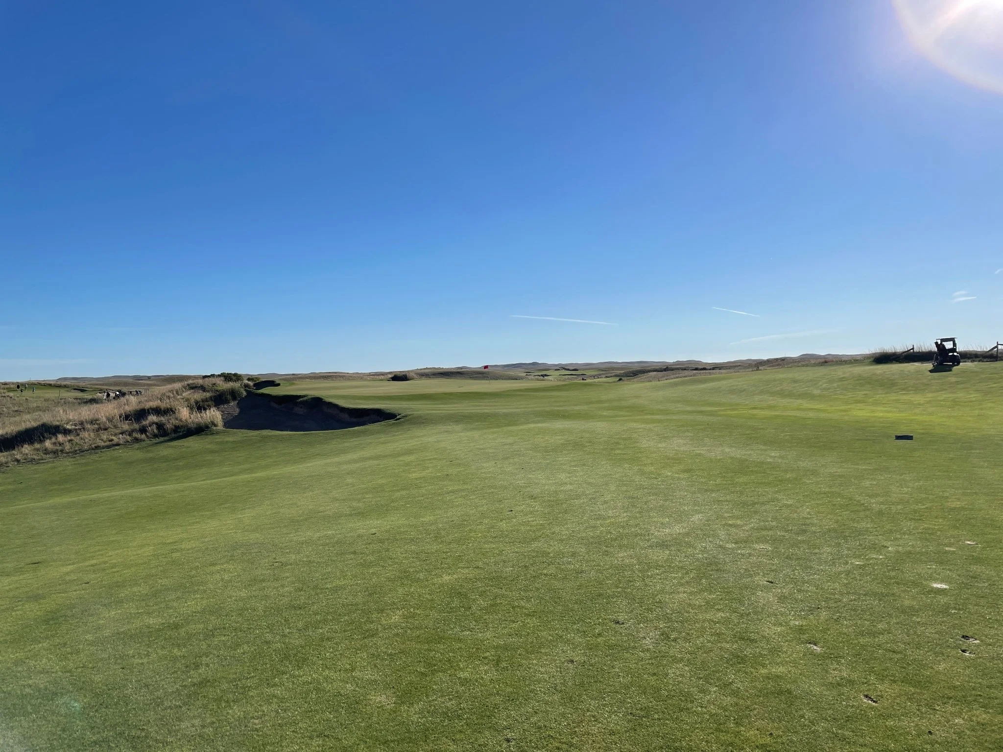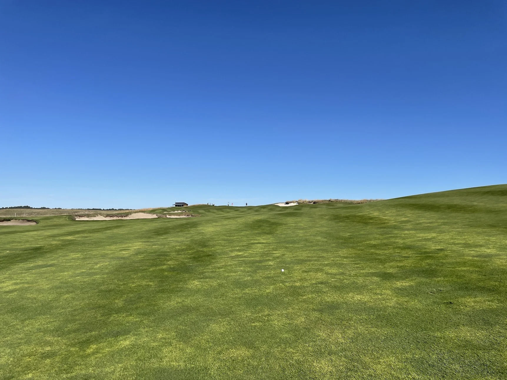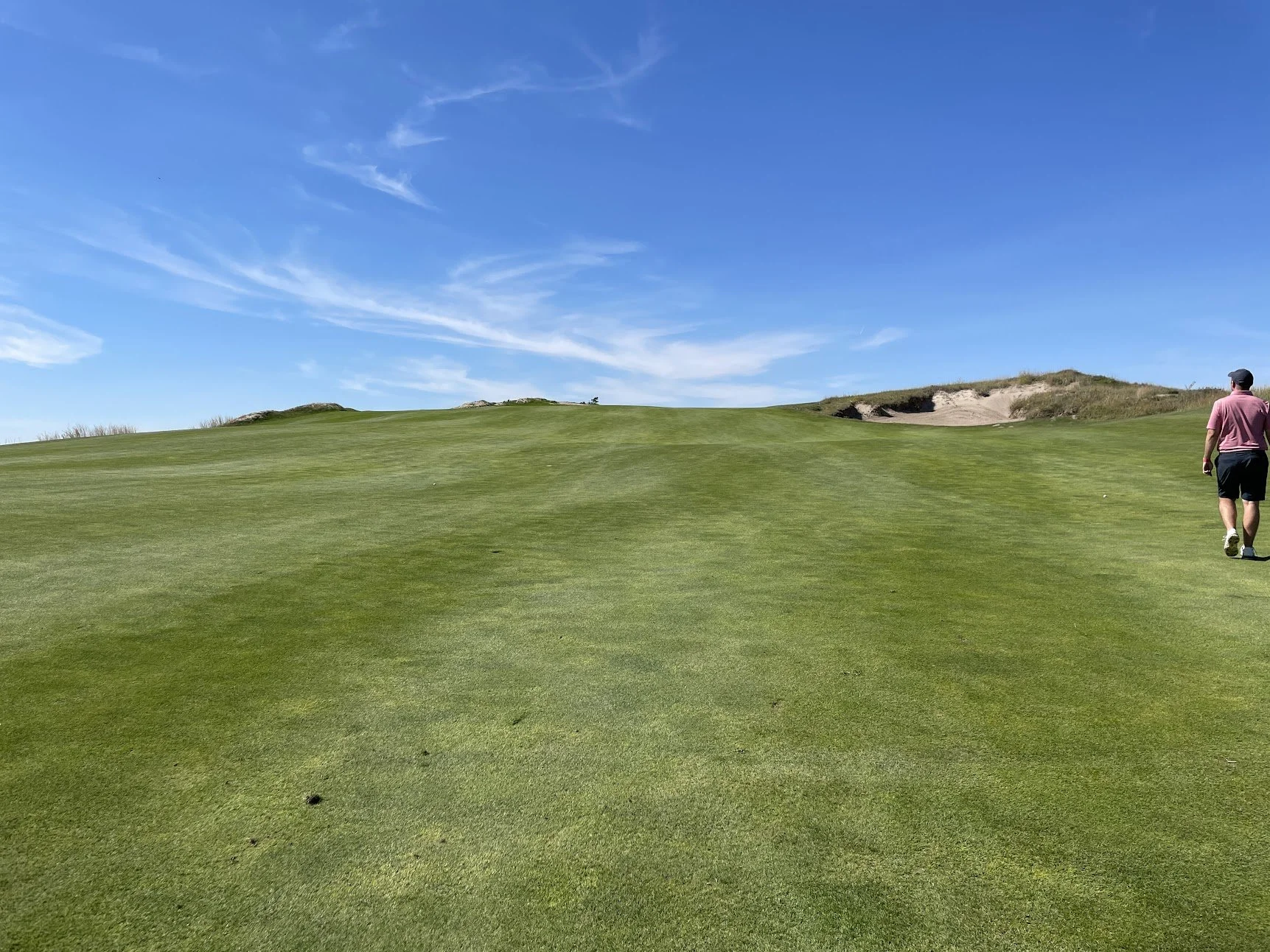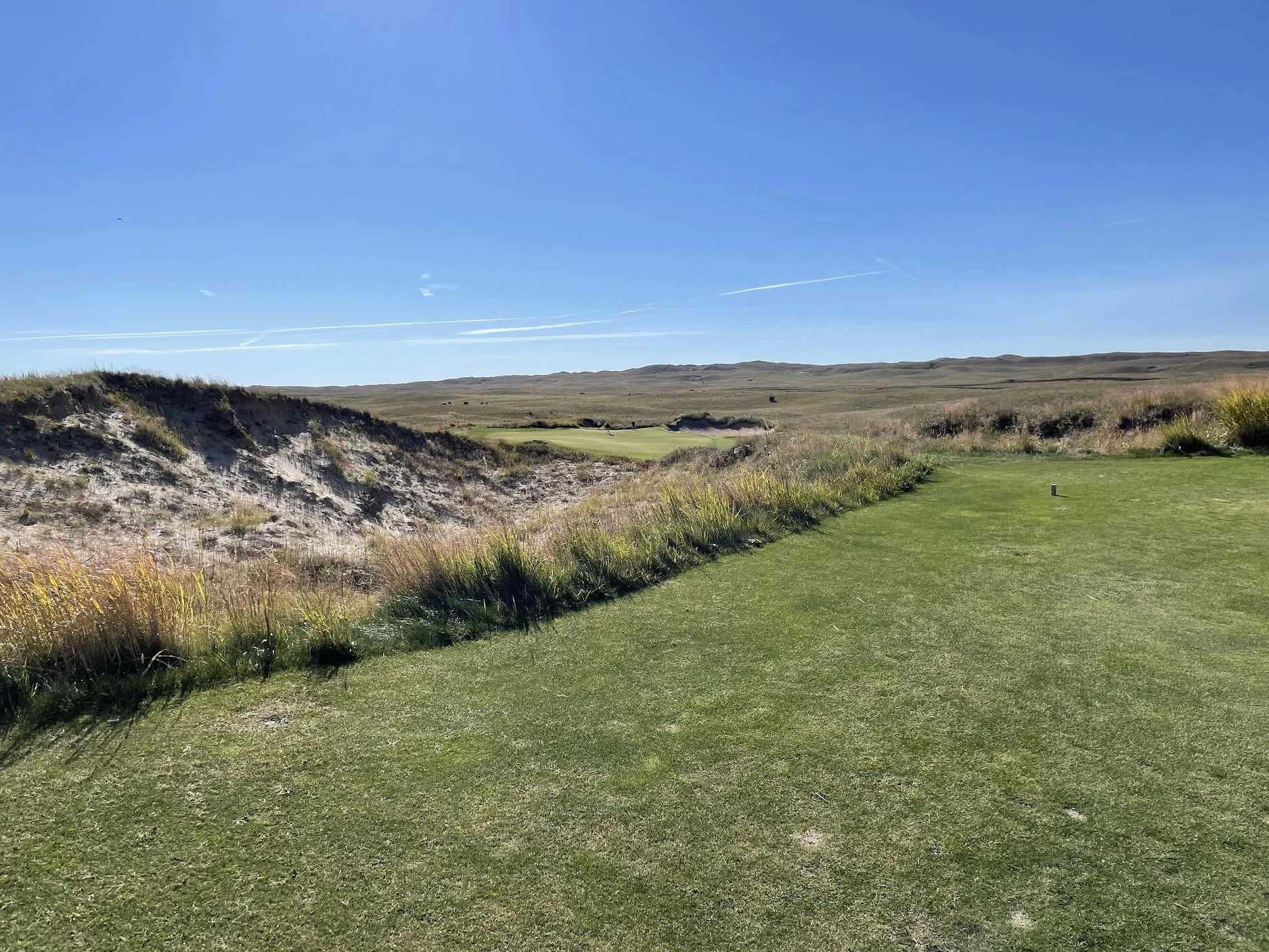 Dunes make the second shot a little uncomfortable, but really anything right of the left dune will end up pretty good. Driving up to see the green is helpful. There’s more room left than it feels like too.
