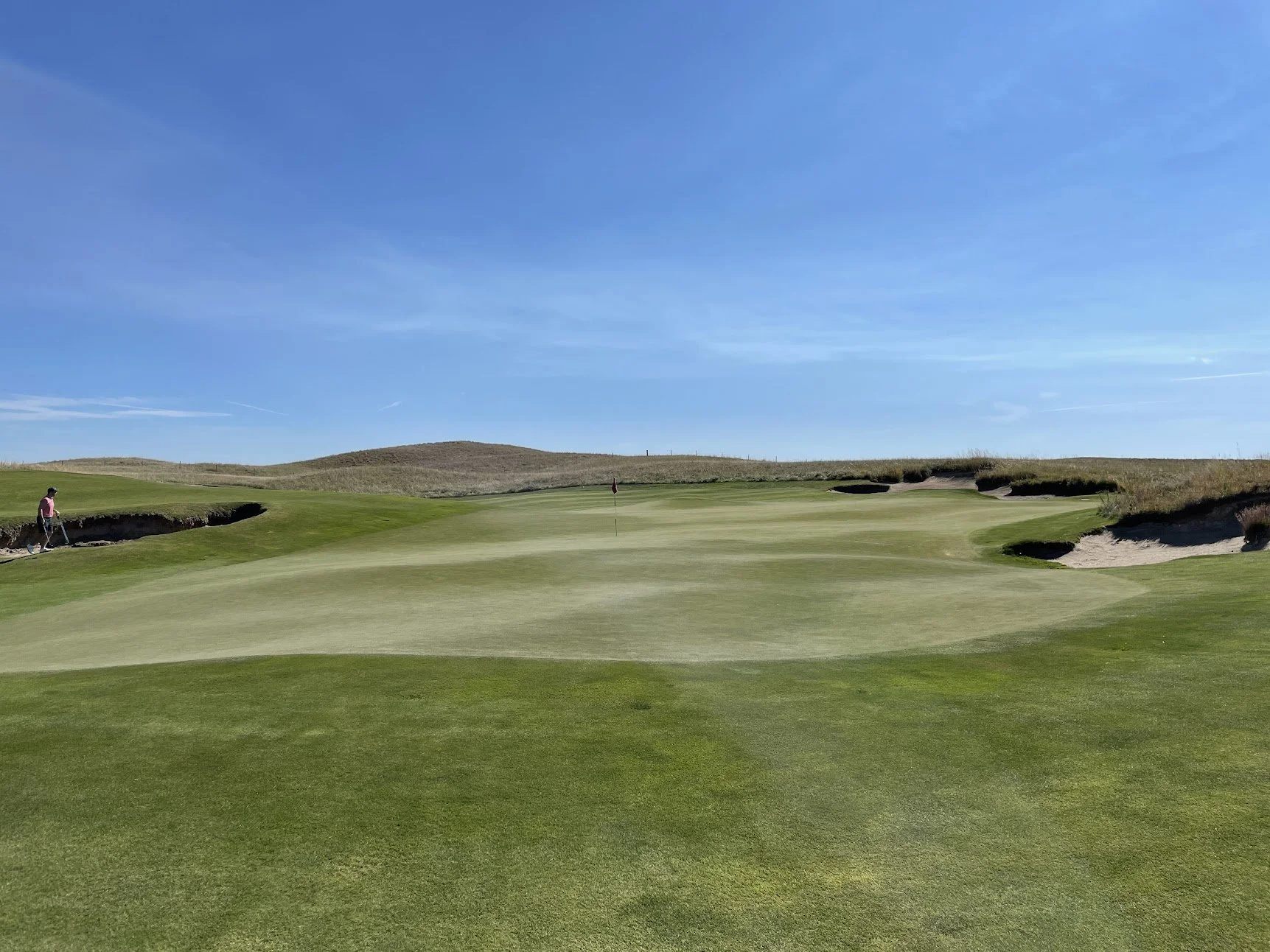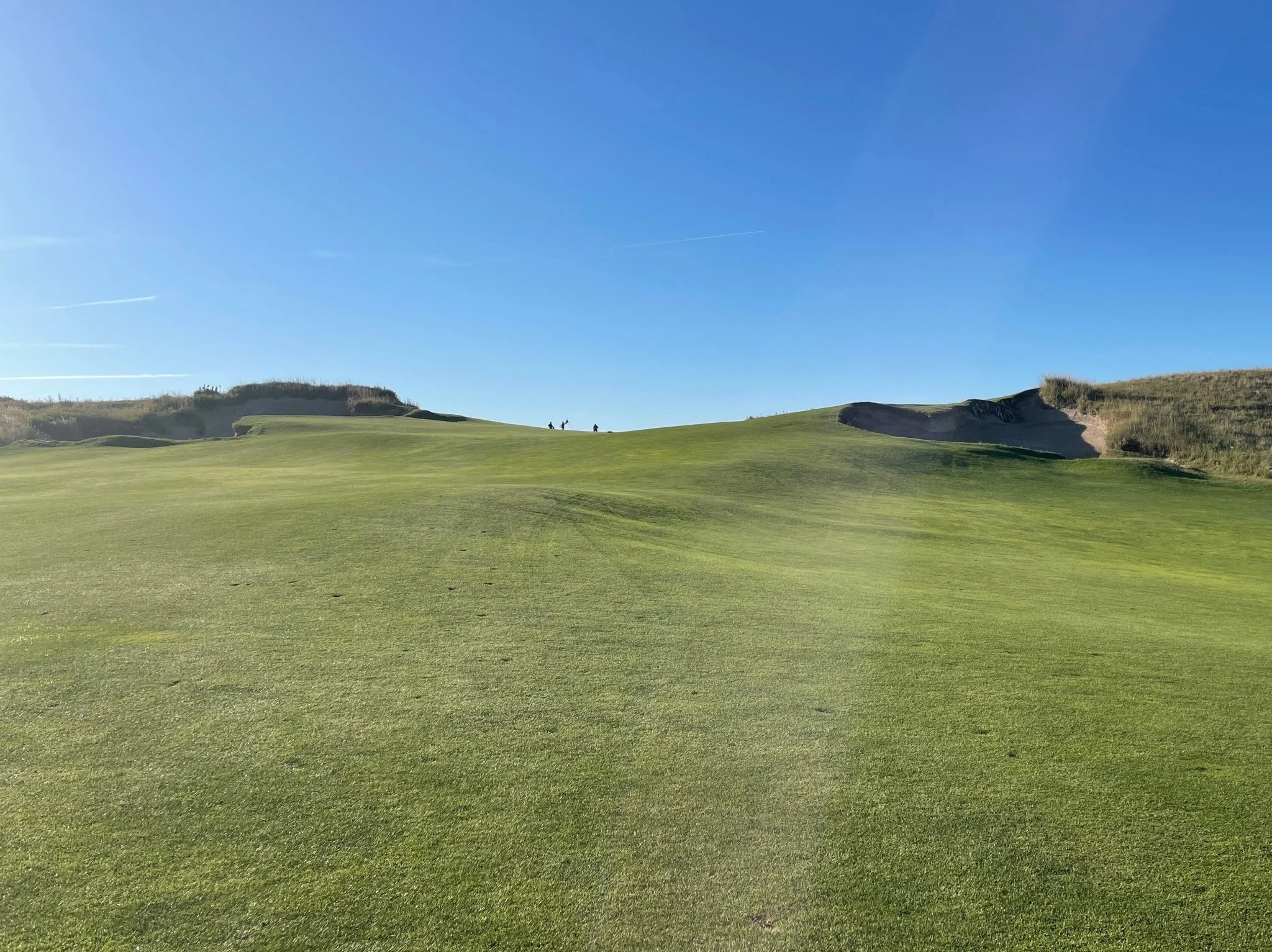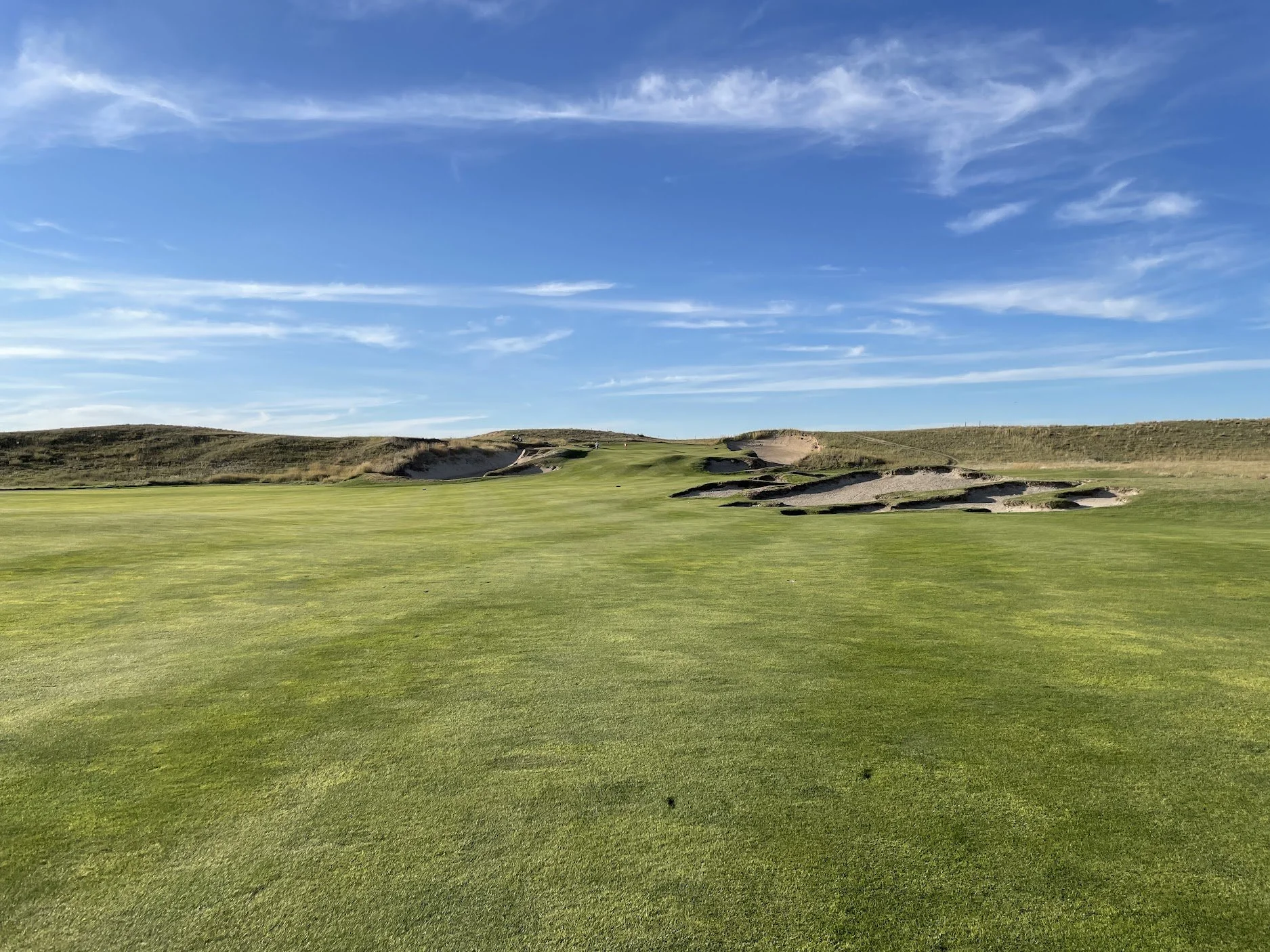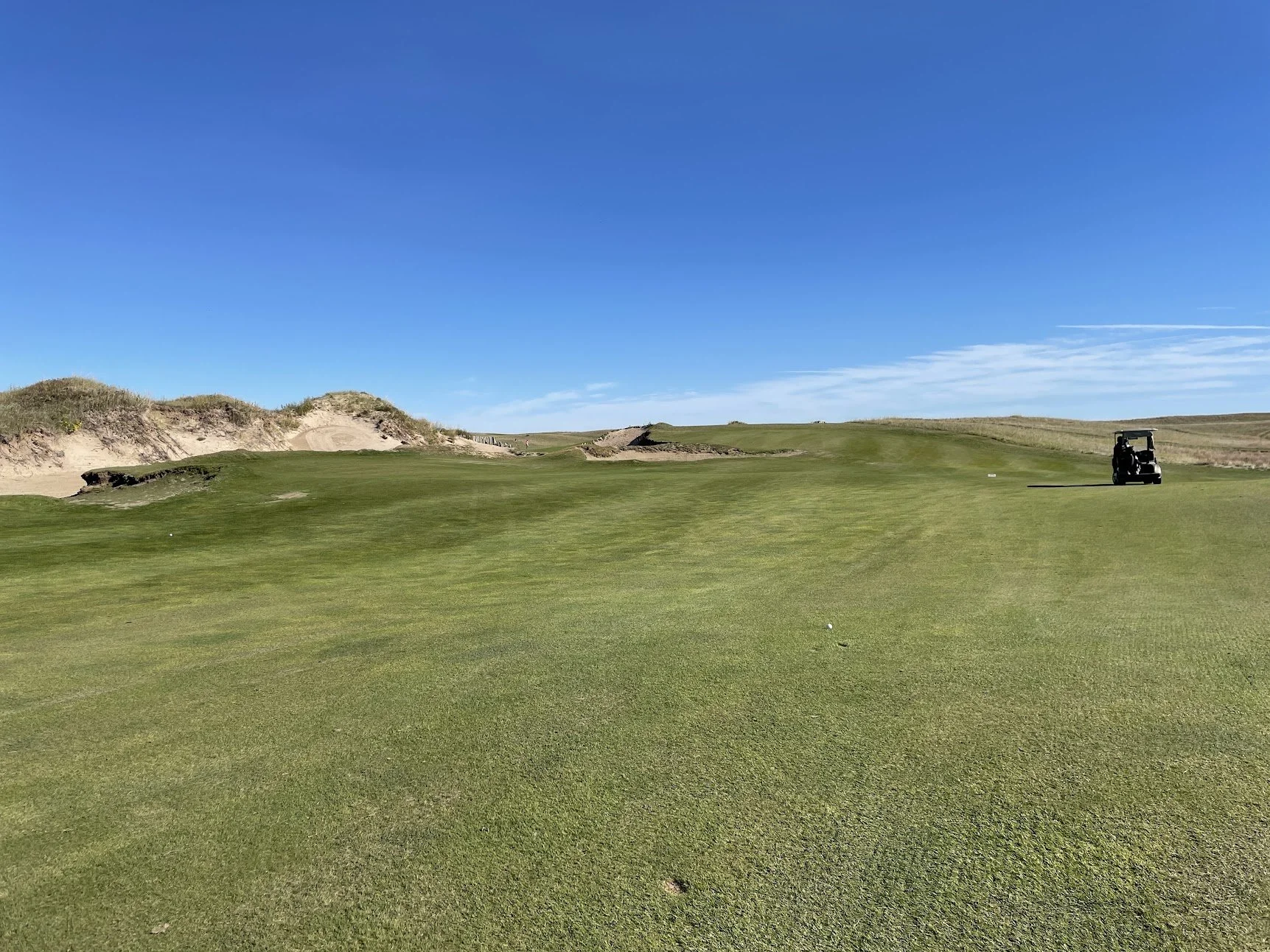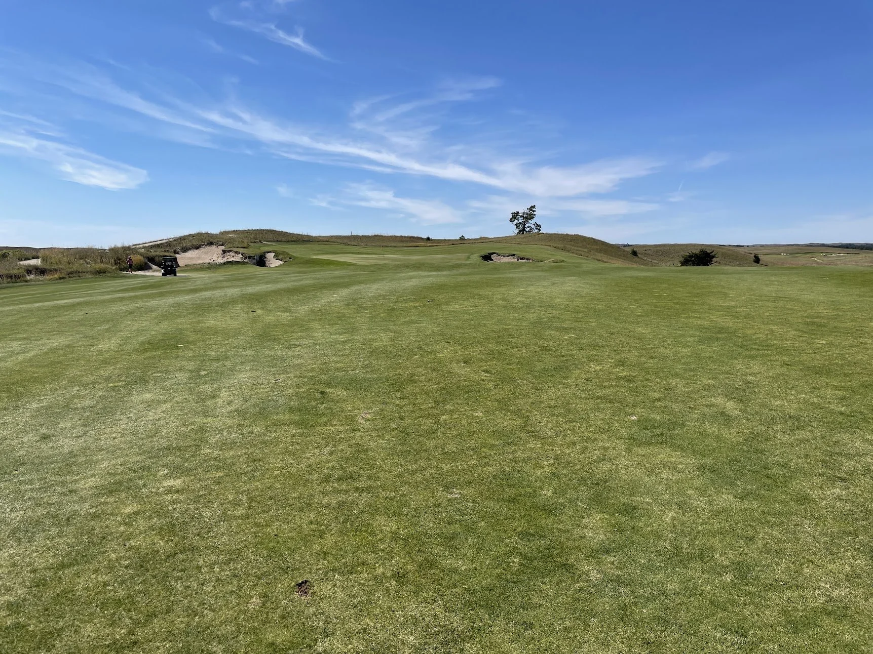 Dunes make the second shot a little uncomfortable, but really anything right of the left dune will end up pretty good. Driving up to see the green is helpful. There’s more room left than it feels like too.